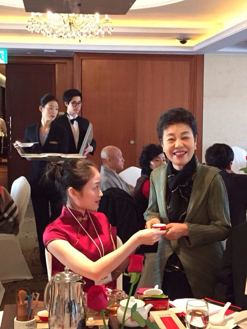 朴槿令女士及韩国官员们专程前往品鉴会现场,并在主席台上专门表达了对武夷岩茶的赞赏!尽管我们的语言不同,但是我们一同喝一杯武夷茶,品一段茶味人生。琴瑟和鸣,茶香隽永,共谱中韩茶文化情谊!