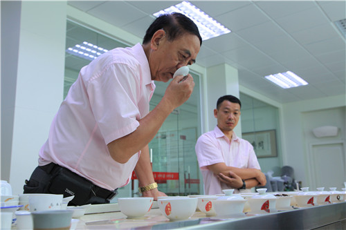 7月1日,经过初制加工后的毛茶被送进武夷星审评室内,在审评师的严格把关下,对4轮40个水仙、肉桂毛茶茶样进行了外形、香气、叶底、汤色等方面的评审。