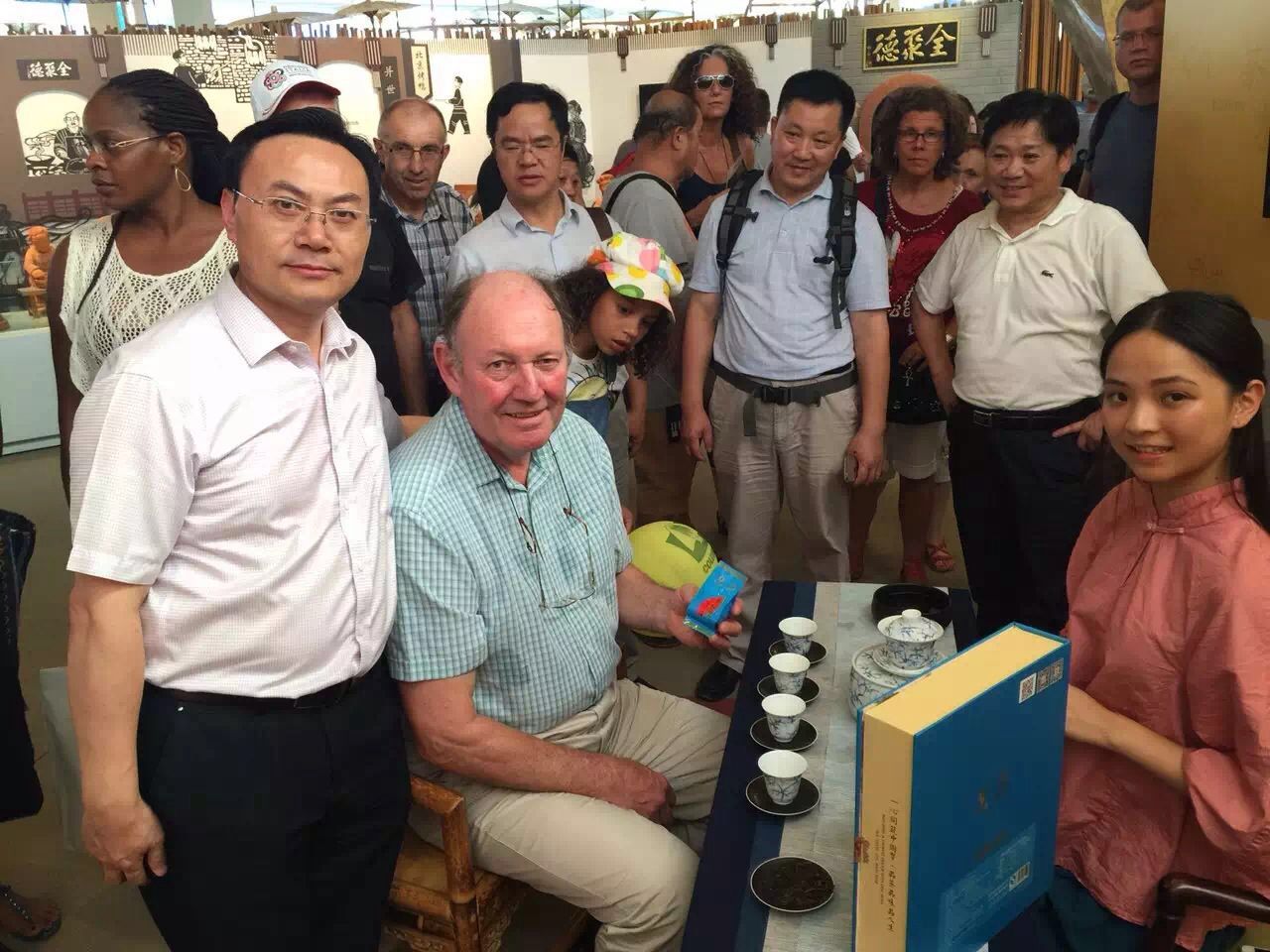 武夷星茶文化顾问、中国茶文化国际交流协会常务理事兼副秘书长、中国国际茶文化研究会常务理事、浙江大学兼职博士生导师、湖南农业大学客座教授、西安六如茶艺培训中心导师林治老师,在此次中国茶文化周上以万里茶路图为背景的茶台前冲泡武夷星大红袍系列产品——世界梦。代表了“和平”的“世界梦”以蓝色为主色调,蓝色的天空,蓝色的大海,蓝色的地球,代表了代表世界的主题颜色。世界茶叶委员会主席Norman Kelly博士在与大家一同品饮了“世界梦”,欣赏由中国大学生茶艺表演团演示的乌龙茶茶艺后笑逐颜开,并给予高度评价。