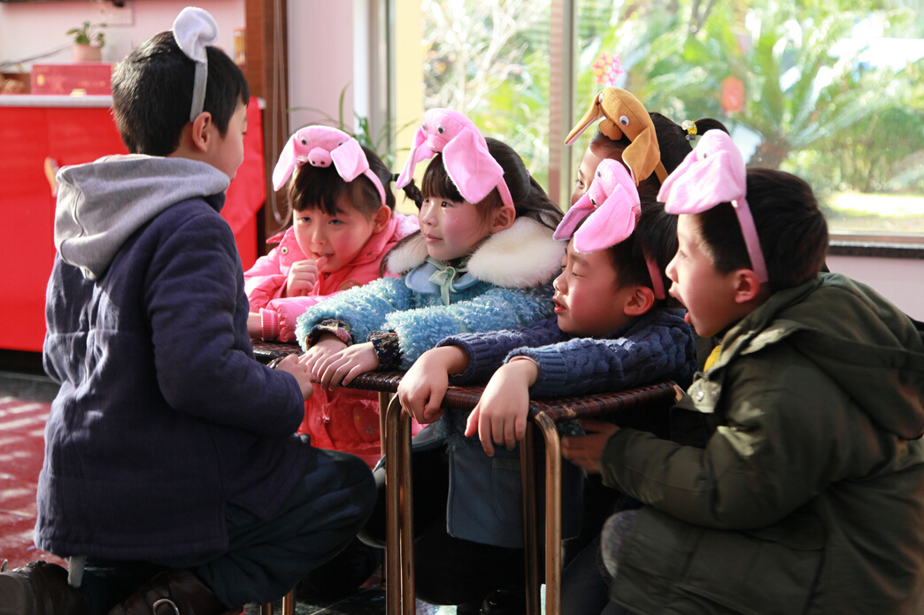 随后,学员们来到武夷星公司展厅,与优贝学习俱乐部和武夷星的茶艺师们一同开展了多项活动。星之韵茶艺表演队为孩子们带来大红袍茶艺表演,孩子们也将他们精心准备的话剧《三只小猪》带给大家,气氛热闹活泼,让寒冷的冬天变得其乐融融。