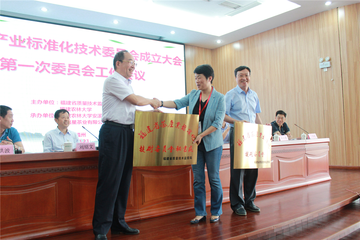 会上正式宣布成立福建省茶标委,并进行授牌仪式。福建省质量技术监督局副巡视员陆军为武夷星和福建农林