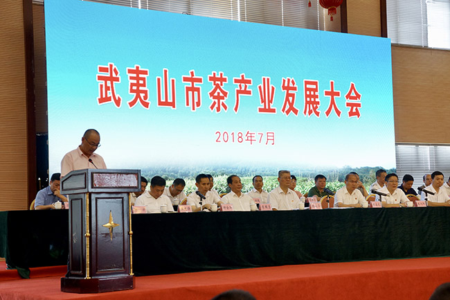 2018武夷山茶产业发展大会于7月24日上午在武夷山三木自由小镇举办。武夷山市委书记林旭阳、市长谢启龙、市人大主任陈先珍、市政协主席杨永华、市委常委林方、王文谦、谢金润、李国勇、官文胜、黄晓东、涂桦忠、楼栋等出席会议。为即将召开的南平市“武夷山水”品牌发布会积极动员,维护好“武夷茶”品牌,促进武夷山绿色产业发展再上新台阶。