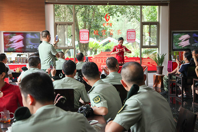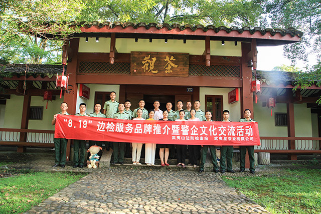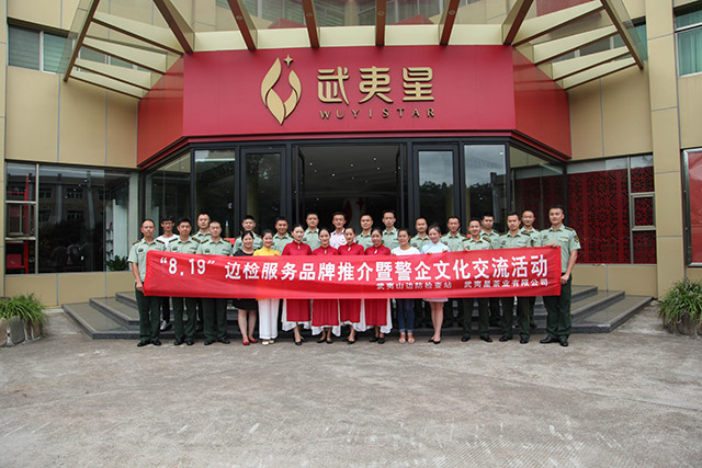 茶为国饮,交融彼此,拉近距离。8月14日,武夷山边防检查站驻地官兵及家属19人来到武夷星总部,开展警企共建文化活动。
