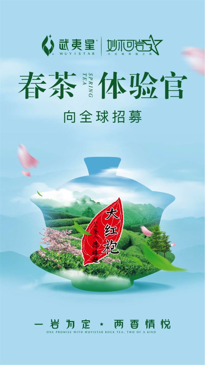 今年的妙不可岩活动,依旧面向全球招募“春茶体验官”。从5月9日开始,春茶体验官们将亲临武夷山,借着明媚的武夷春光,通过多场“妙不可岩·春茶体验之旅”,参观武夷星茶语空间馆、打卡母树大红袍所在地(九龙窠景区)、到大红袍茶寮品尝网红茶叶蛋;