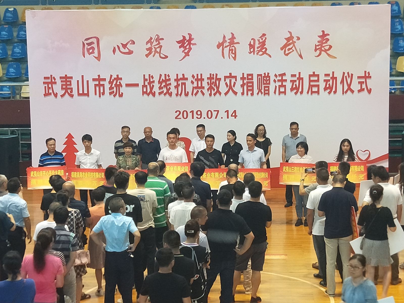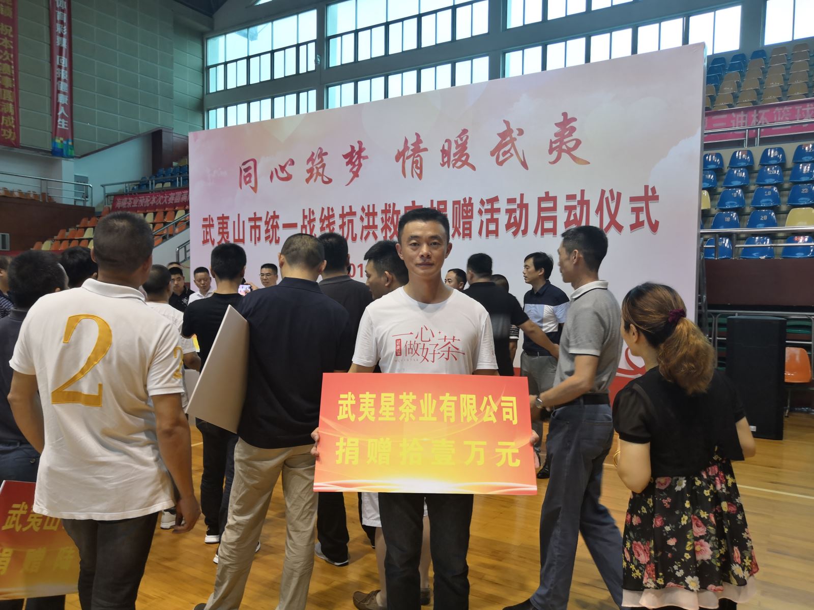 7月15日上午,武夷山市统一战线抗洪救灾捐赠活动仪式于武夷山市体育馆启动,出席活动的有武夷山市当地领导、当地爱心企业与爱心人士。其中,武夷星茶业有限公司副总经理、党支部书记郭远海代表公司出席活动并捐赠人民币拾壹万元整,以此来表达对我们的家园武夷山、我们的兄弟姊妹武夷山人民的问候与祝福。