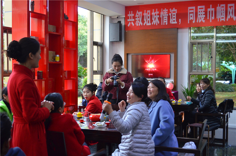 共续姐妹情谊,共庆妇女节。在我司工作人员引领下,景区“半边天”们参观了武夷星种质资源圃、茶语空间文化长廊,从不同角度了解武夷茶的种类及历史文化。这次活动以茶为载体展开,在公司展厅,品茗的同时茶艺师还为大家设置了武夷茶知识抢答环节。武夷山景区“半边天”们作为武夷山景区的形象,对武夷茶的知识也了解颇深,不仅能很快抢答出我们提出的问题,并且回答标准,现场气氛活跃。