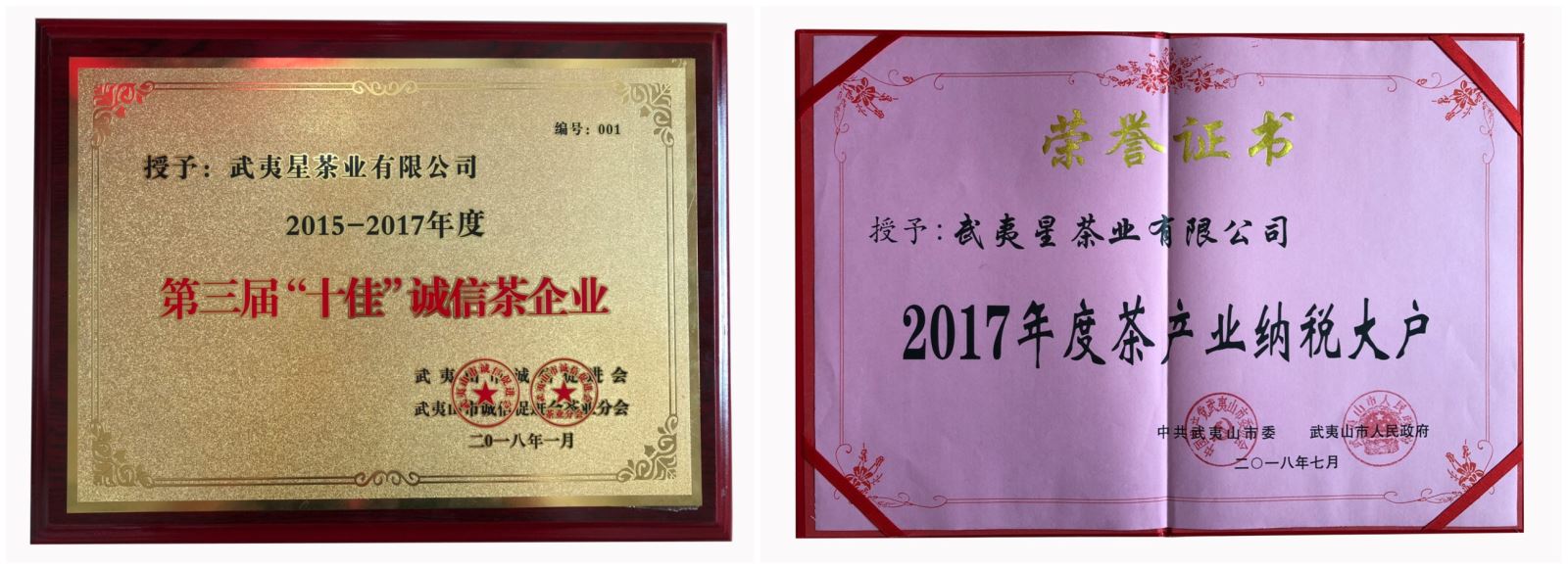 在本次茶产业发展大会上,武夷星被授予“第三届‘十佳’诚信企业”、“2017年度茶产业纳税大户”殊荣!