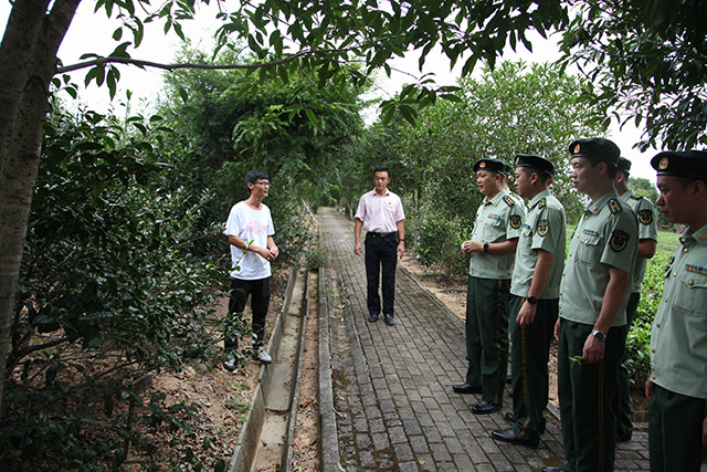 上午9时许,边检官兵们的排列着整齐的队伍到达武夷星总部。在我司党支部书记、副总经理郭远海带领下,大家参观了公司茶树种质资源圃、党建宣传栏、精制加工厂、科研大楼、茶语空间文化长廊等。随后,一行人观看了大红袍茶艺表演,并通过茶艺师的冲泡和讲解,品饮了斗茶赛系列茶品及武夷星四大名枞。