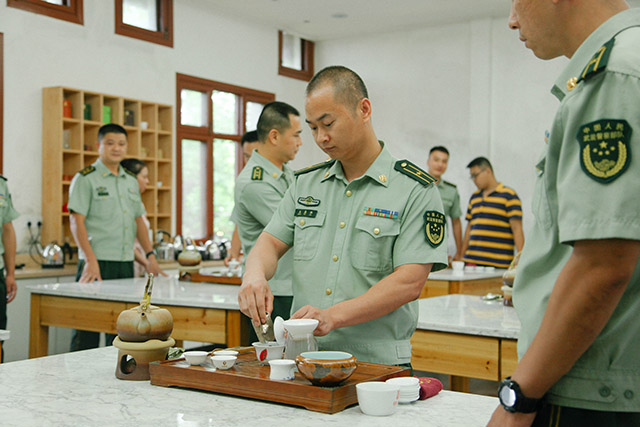 在压力倍增的现代人生活中,慢慢欣赏一杯茶,并学会简单的识茶、泡茶方法是许多人用来减压的方式。星愿茶文化的老师们为来访的官兵及家属们制定了专业的茶叶知识和茶文化课程,通过认识武夷茶、了解武夷茶文化最后熟悉掌握茶叶冲泡方法给予讲解和操作,并让大家都参与动手实践,冲泡一杯香好韵足的武夷岩茶。