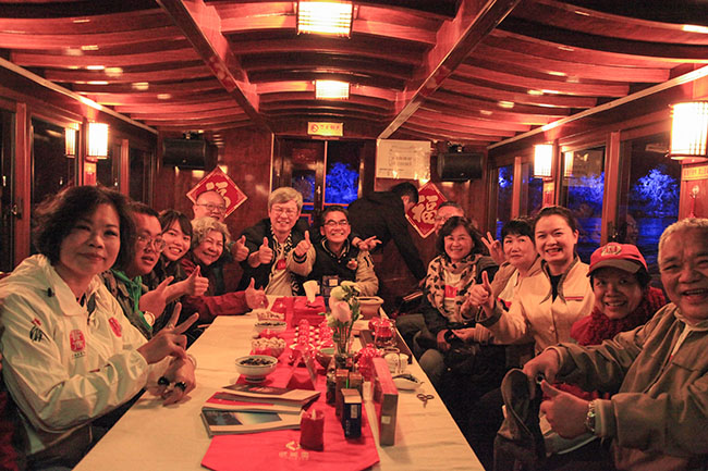 晚餐结束,武夷星为茶商会一行准备了别样的崇阳溪畔品茗。夜色中,所有人在船上品茗、聊家常,气氛十分愉快。