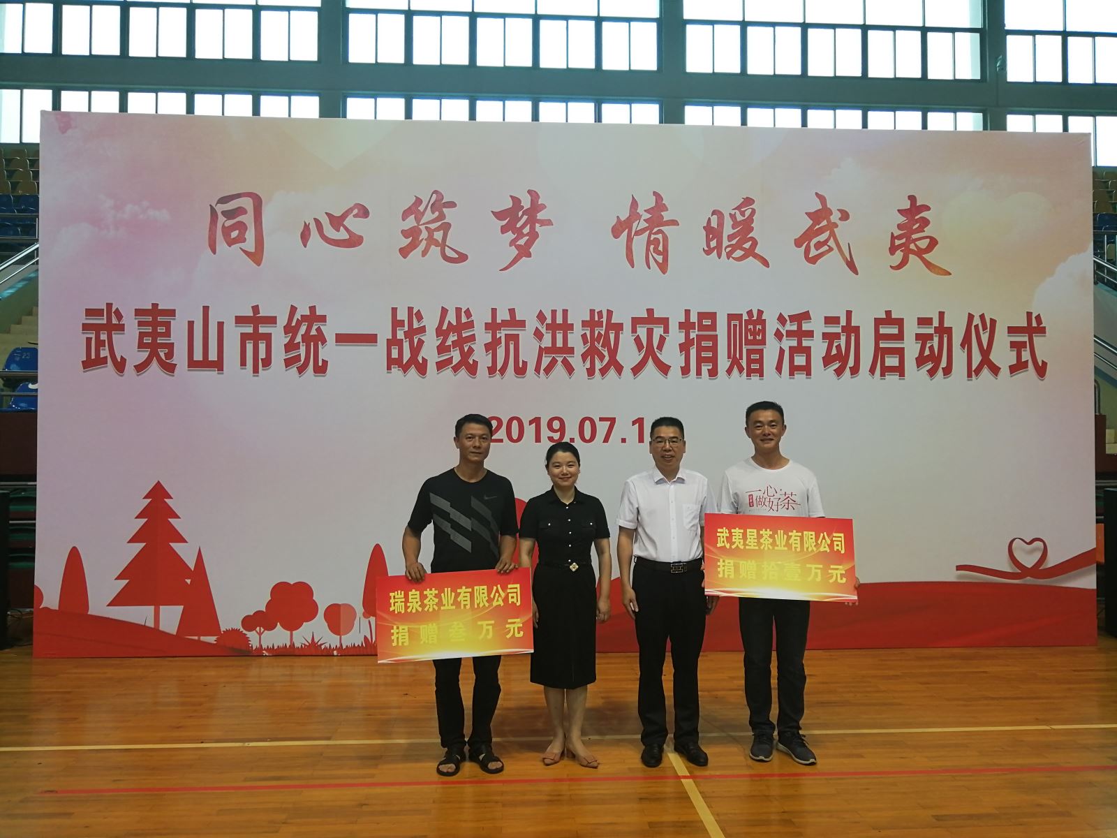 7月15日上午,武夷山市统一战线抗洪救灾捐赠活动仪式于武夷山市体育馆启动,出席活动的有武夷山市当地领导、当地爱心企业与爱心人士。其中,武夷星茶业有限公司副总经理、党支部书记郭远海代表公司出席活动并捐赠人民币拾壹万元整,以此来表达对我们的家园武夷山、我们的兄弟姊妹武夷山人民的问候与祝福。