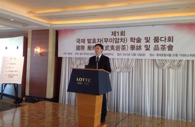 当地时间12月13日上午11点,韩国首尔第一届发酵茶(武夷岩茶)学术交流及品茗会在韩国lottehotel seoul 37楼开幕。本次交流品茗会由韩国茗韵堂、中国武夷星茶业有限公司、发酵茶研究所共同举办。