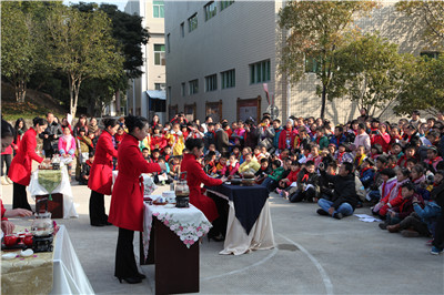 冬季的武夷山气温十分寒冷,但却阻挡不了同学们学习的热情。伴随着当下最红的《爸爸去哪儿》的主题音乐响起,孩子们不由自主地跟着音乐合唱起来,队伍也排的整整齐齐。