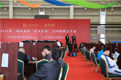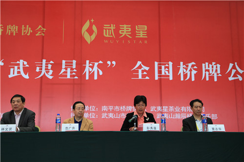 2014年第二届武夷山“武夷星杯”全国桥牌公开赛在武夷山京闽高尔夫酒店拉开序幕。武夷山市政府副市长彭秀莲等出席了开幕仪式并发表开幕讲话。比赛为期四天,作为本次比赛协办单位和唯一指定冠名赞助单位,武夷星将全程陪伴比赛日程中的牌友们,为牌友们提供现场茶品冲泡和品茗服务。