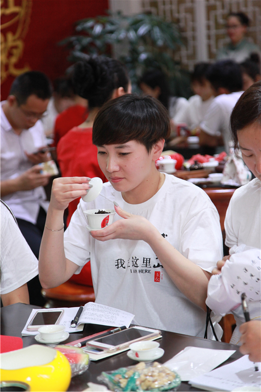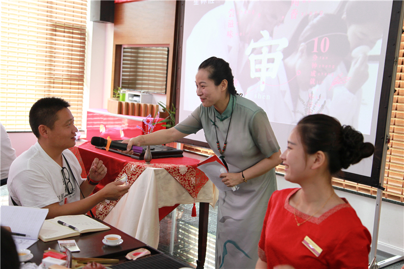 了解完五香大红袍,下午的“感恩十五周年——一路有你,携手共进”从星爱上大红袍品鉴会将大家从课堂带入实践,从感观到审评全方位了解大红袍五种香型及星标准的实际内容。培训部李霞老师耐心细致的实践教学为精英们指点迷津。加深品牌意识,增强销售信心。