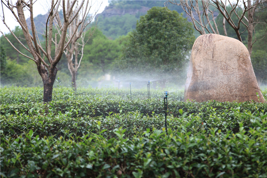 我司茶园区别于传统只有茶树的单一茶园,在道路两旁以及茶行间种植红豆杉,罗汉松,桂花树等乔木,在改善茶园生态环境的同时,保证所植树木与茶树和谐共生。茶园引进先进的喷灌系统,与时俱进,在减低生产成本的同时,节约用水,响应国家可持续发展战略。参观人员对于我司在茶园的建设过程中的困惑进行了咨询,我司工作人员一一进行了解惑,参观人员表示通过我司茶园,对于生态茶园的概念有了更加深入的了解,以及希望在后期能与我司继续保持密切的交流。