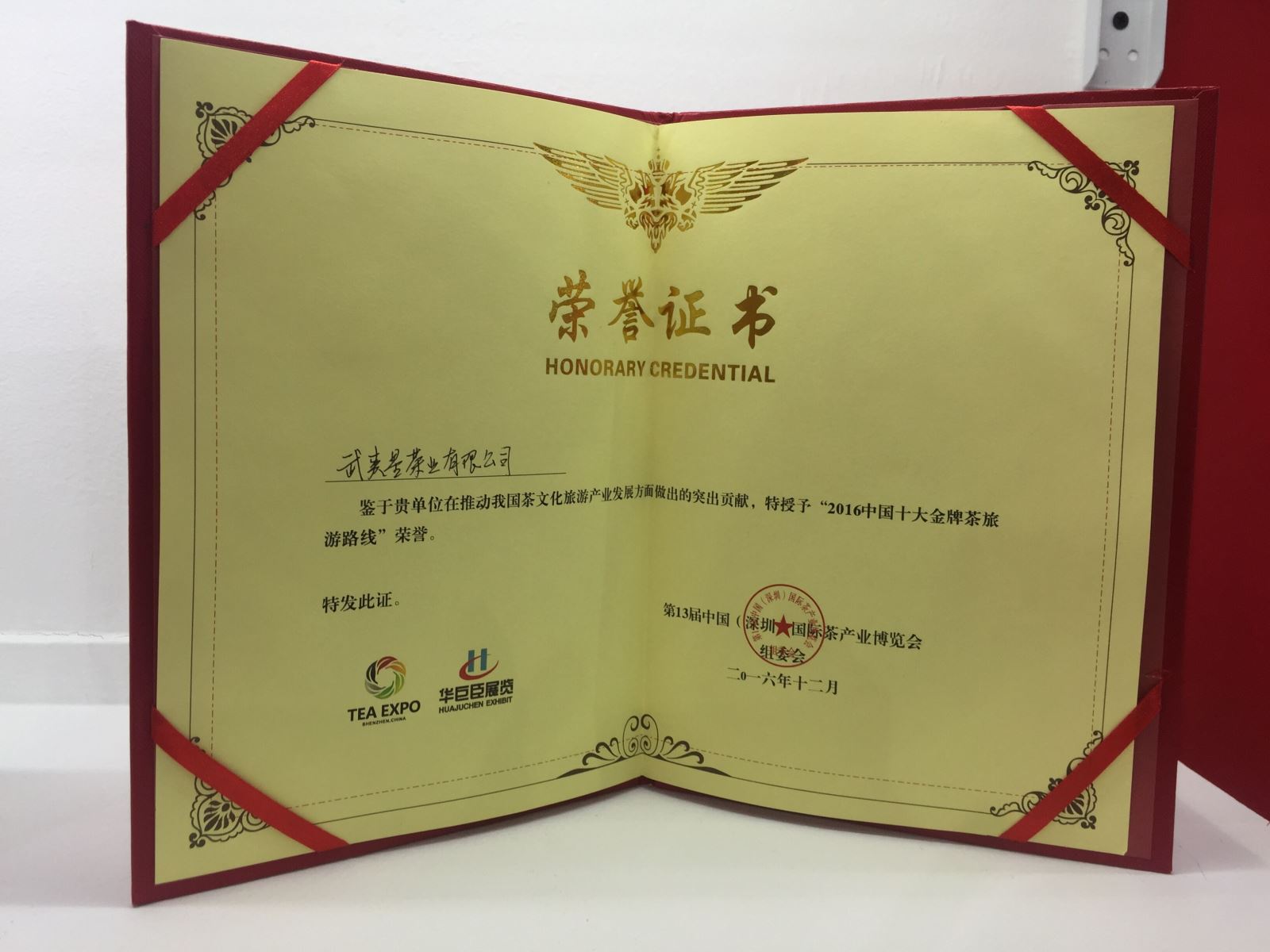 深圳茶博会最大的亮点之一是行业创新。时下,旅游行业方兴未艾。茶企业结合茶产区特点推出的茶旅路线也在本届茶博会上集中亮相。今年武夷星推出的茶旅活动也茶旅游路线,在本次茶博会上被授予“2016中国十大金牌茶旅游路线”荣誉证书!