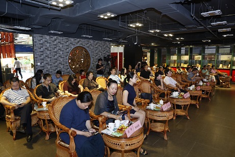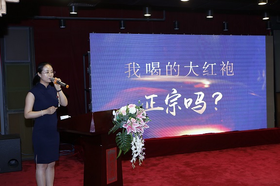 我司华北区培训部经理岳颖为来宾做了星标准“栽、制、审、泡、啜”和“一岩两香”主题分享,通过简洁语言和PPT展示诠释岩茶“一岩两香”的品饮标准,分享“从星爱上大红袍”全国品鉴活动经验,全力倡导“全民饮茶,健康饮茶”观念。